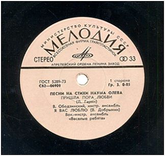 С62-06909-10 * 1976 * (Песни на стихи Наума Олева) |
