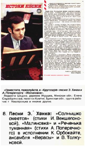 Кругозор № 12 (201) * 1980 * ДЕКАБРЬ (8-я звуковая страница) «Истоки песни» (Песни Э. Ханка) |