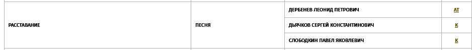 Цитата в ВААП каждый автор САМ регистрировал свои произведения. Там требовалось для этого личное присутствие с заполнением разных документов и предоставления подтверждения авторства. Так что Дьячков не мог бы зарегистрировать там авторство ПЯ. ------- Ошибаешься. Правила регистрации авторских прав позволяли заявителям регистрировать права соавторов. Когда автор заявлял свои права в ВААП, он заполнял Заявление и прилагал к нему ряд документов. В Заявлении, после текста: «Прошу зарегистрировать следующие мои произведения» заявителю необходимо было заполнить таблицу, состоящую из нескольких граф, в том числе в ней были следующие графы: - «написано единолично или в соавторстве (фамилия и оба инициала соавтора)» - «по вокальным произведениям указать фамилии и оба инициала авторов текста (музыки)» Конечно соавторство – дело тонкое. Долевое участие каждый оценивает по-своему. В песне «Расставание» соавторство композиторов отражено, как видно, в равной мере - 50 на 50. Так, что сведения, заполненные/не заполненные в Заявлении на авторство произведения – на совести Заявителя. А потом, когда Заявление рассмотрено и сведения внесены в картотеку, можно сколько угодно судиться и доказывать, что эти сведения не верные или не полные. Известных случаев нечестного поведения сколько угодно. В.Дьяконов не стал судиться с Лозовым, единолично присвоившим себе текст всей песни «Ивушка». Музыканты ГСН не стали судиться с руководителем коллектива из-за авторства музыки к разным песням. Музыканты «Рок-ателье» не стали судиться с руководителем коллектива из-за авторства музыки к м/ф «Пёс в сапогах».